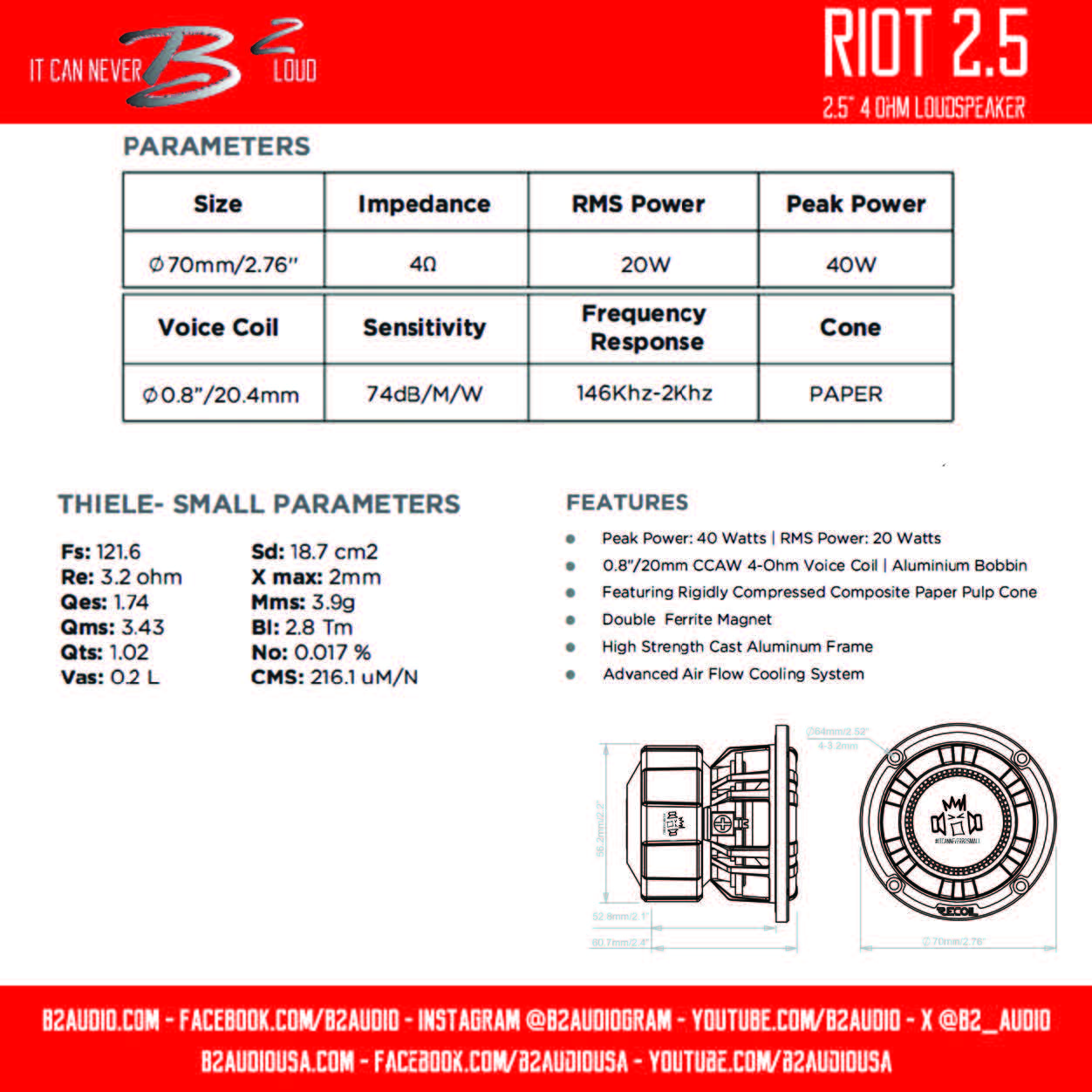 The new B2 Audio RIOT 2.5 is almost here—and it’s about to shake up the game for tight-space, high-output mids. This loudspeaker may be small, but don’t underestimate it. The RIOT 2.5 was built to cut through the mix with sharp vocals, crisp detail, and clean performance where other small drivers fall flat.